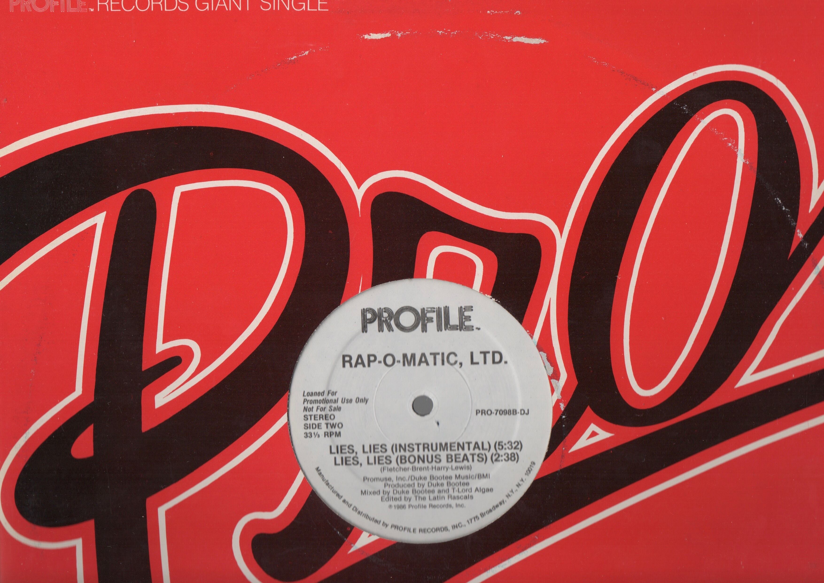 【12inch】Rap-O-Matic, Ltd. / Lies, Lies