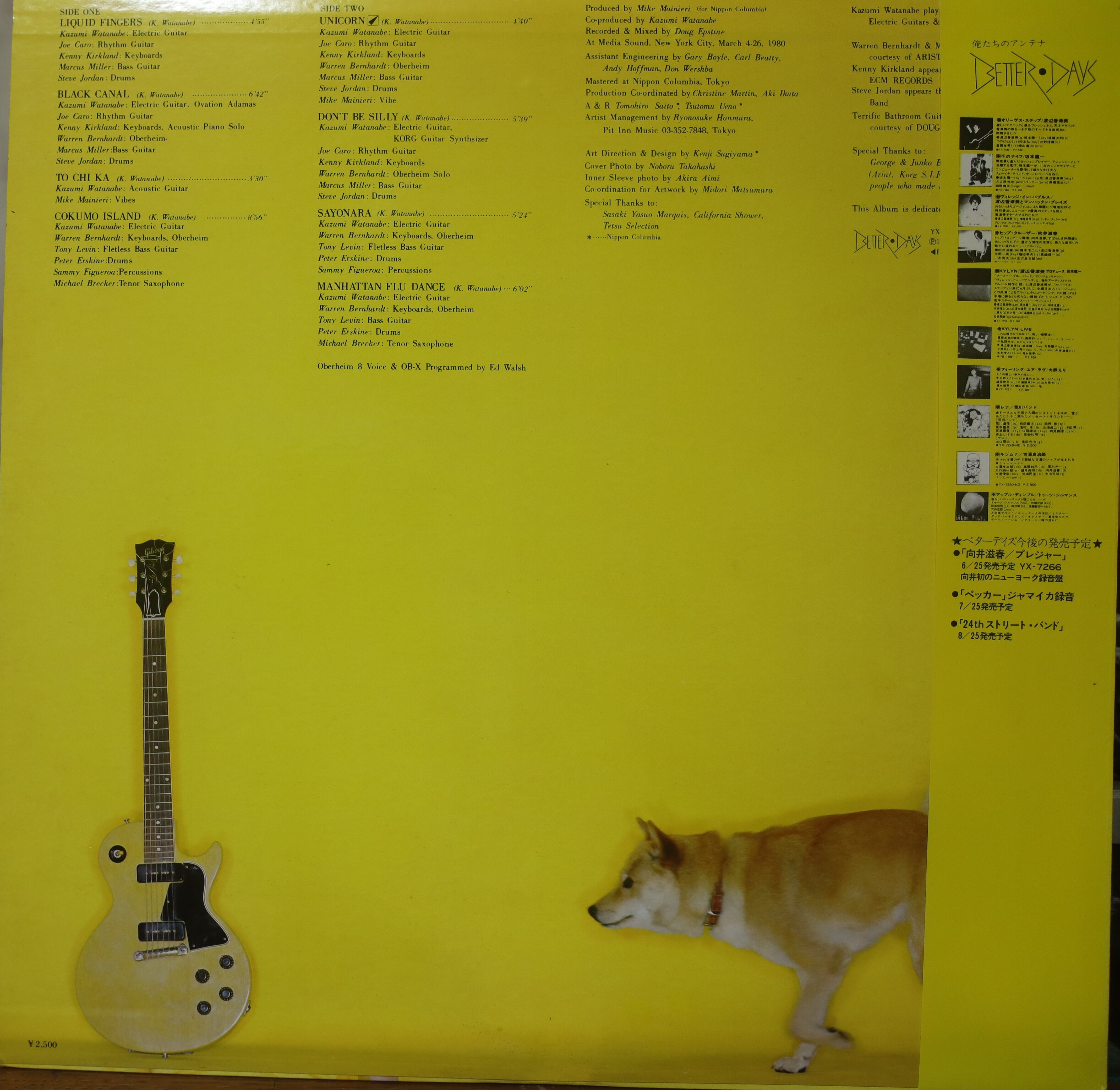 Marcus MillerやMike Mainieri, Tony Levin, Michael Brecker等がバッキングサポートした渡辺香津美N.Y.録音の80年フュージョンジャズ名作「To Chi Ka」。