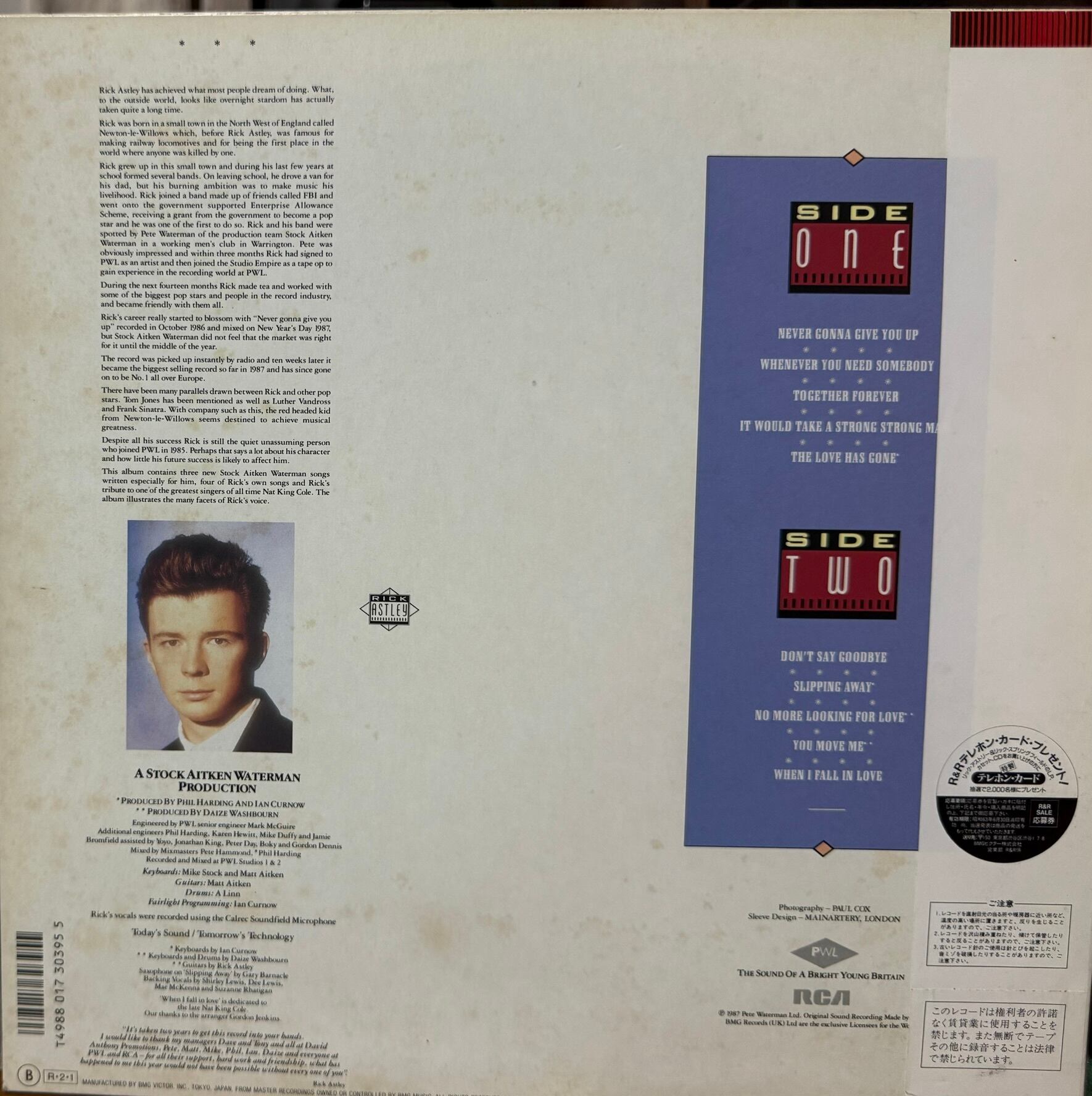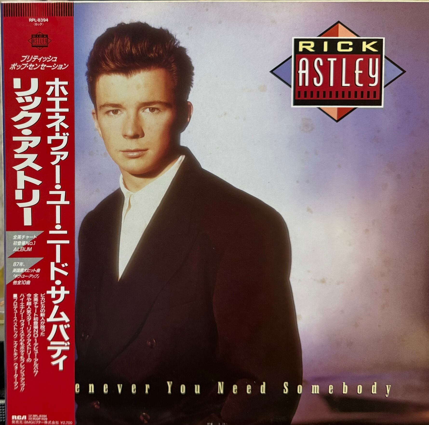 【廃盤LP】Rick Astley / Whenever You Need Somebodyになります。日本盤・帯・解説付きです。