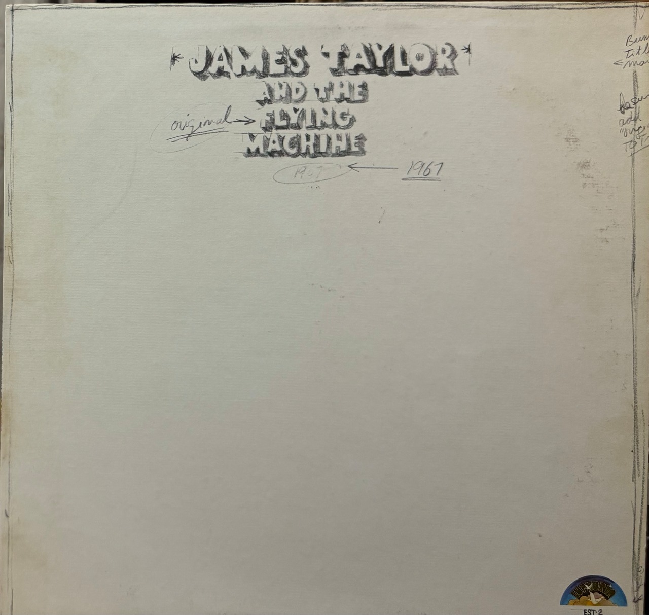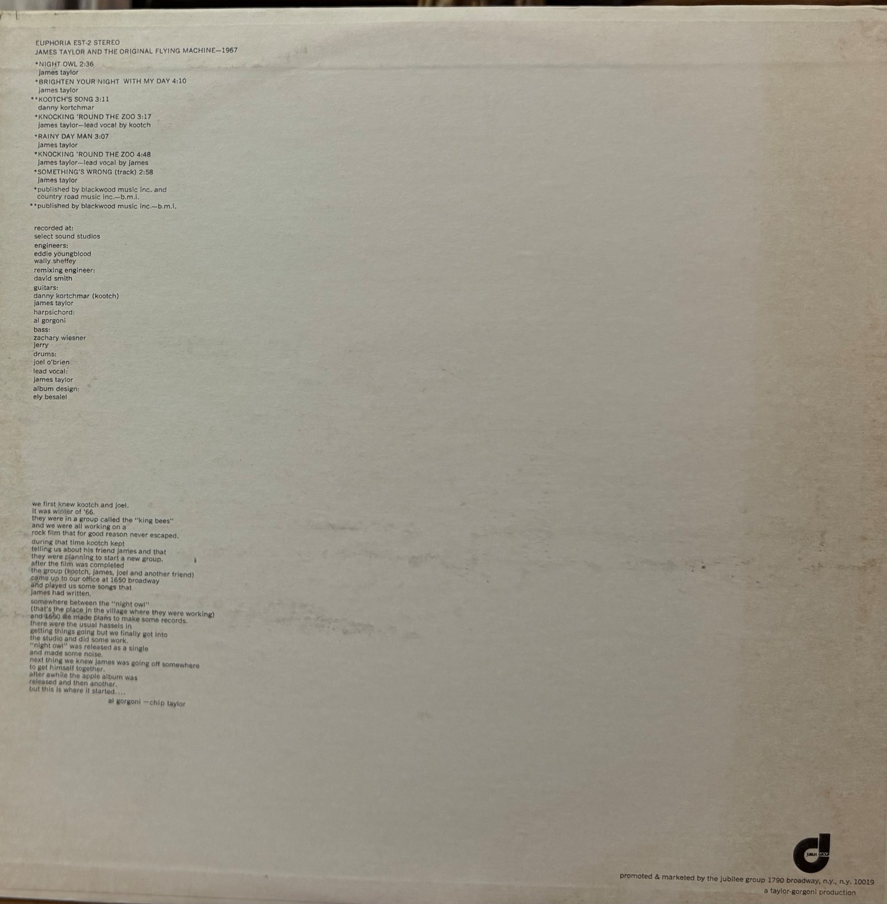 【廃盤LP】James Taylor And The Original Flying Machine / 1967になります。US盤です。