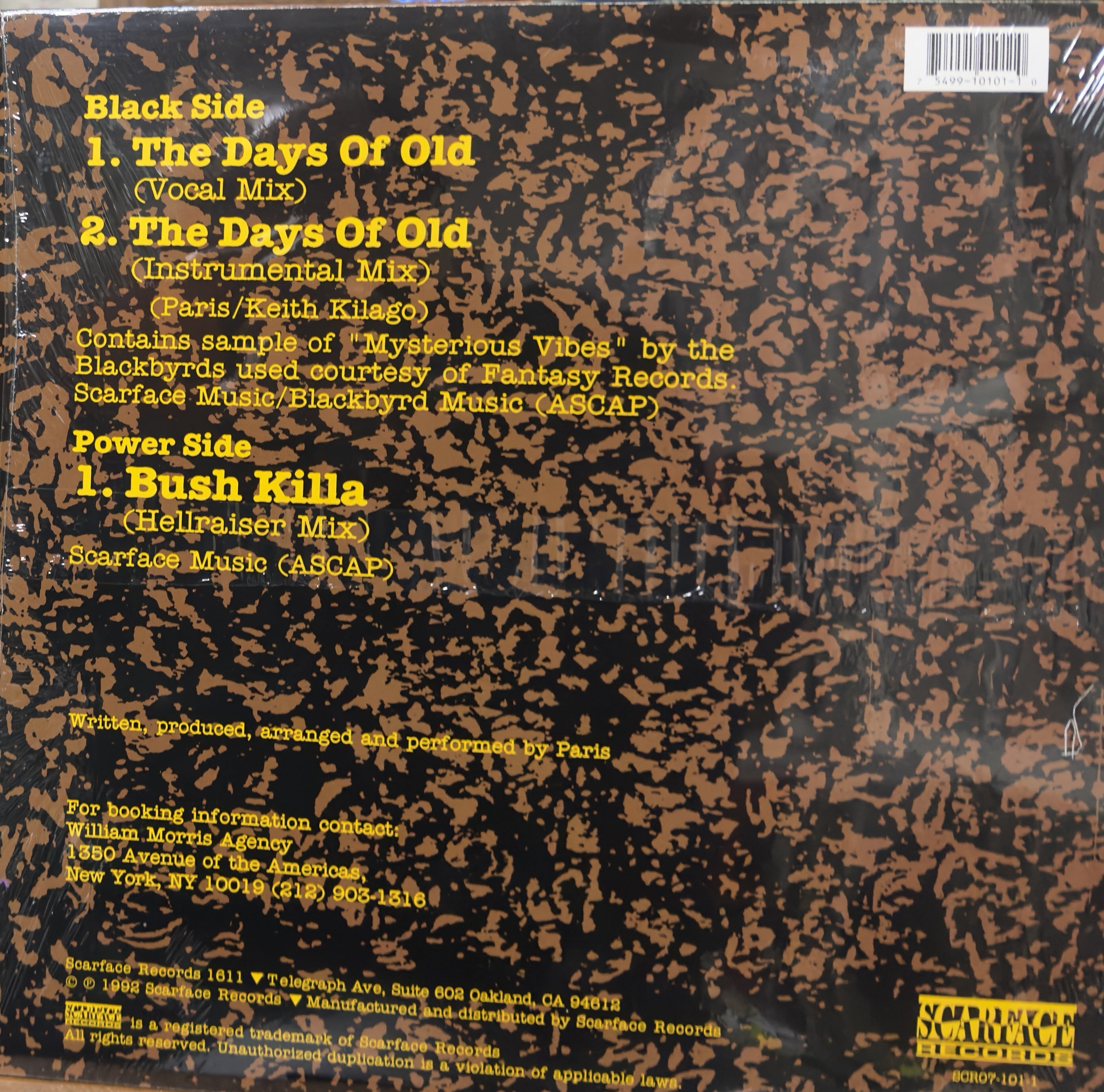 92年リリースの、BLACKBYRDS「MYSTERIOUS VIBES」 ネタのヒップホップ・クラシック!!ジョージ・ブッシュ 大統領の声ネタをブレイクでサンプルし、現状に対し ての憂いを表明した曲。そしてそのブッシュ大統領を 暗殺するという過激なリリックでTOMMY BOYが配給を 取りやめた問題作「BUSH KILLA」をB面に収録!過激 なリリックのみならず、アップテンポなファンク・ ビートに、パーカッションや途中ではYAZOO 「SITUATION」での笑い声、アカペラなどを コラージュした超絶チューン!オススメ!