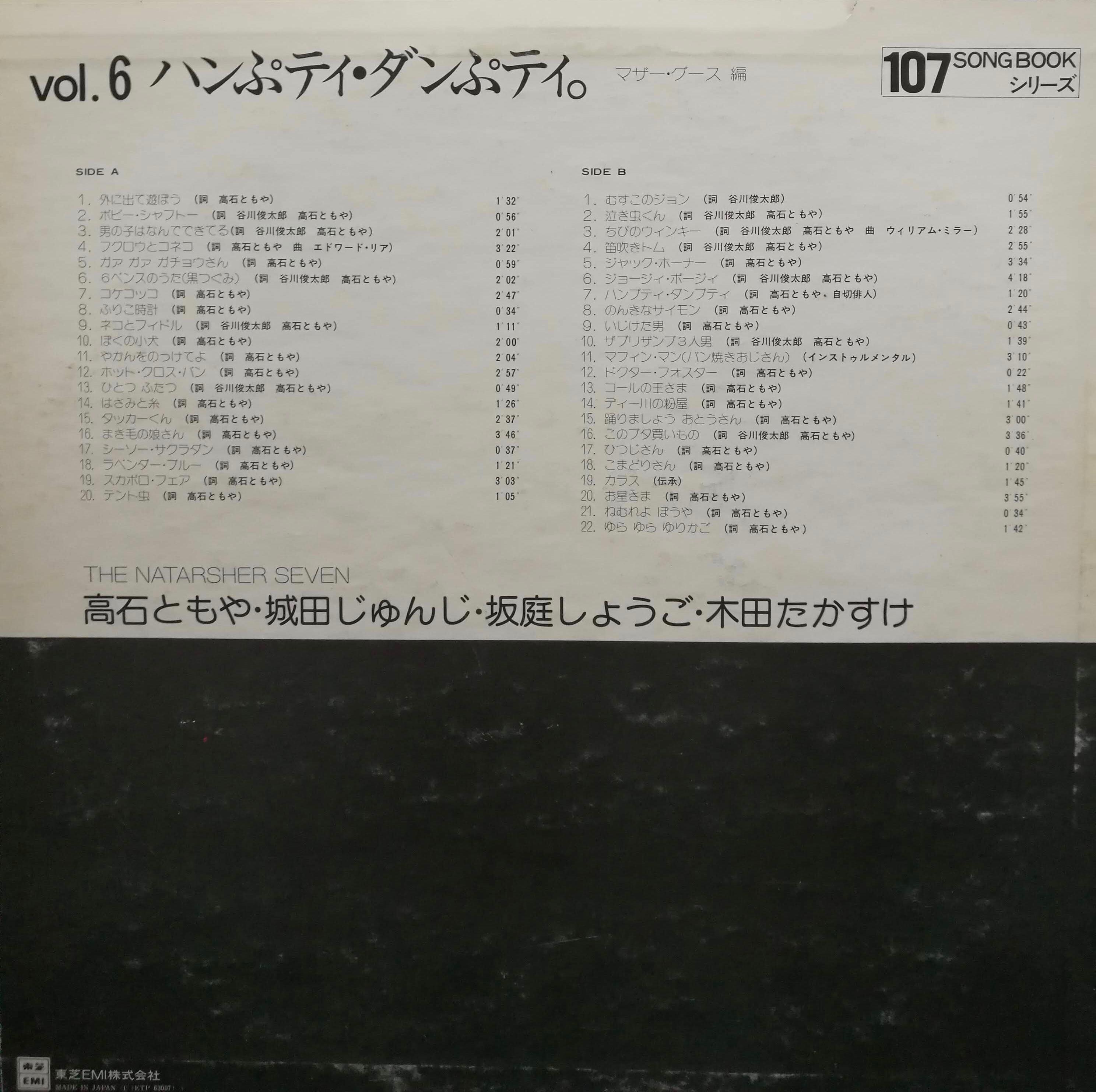 【廃盤LP】ザ・ナターシャ・セブン / Natarsher Seven 107 Songbook Vol. 6になります。日本盤歌詞カード付です。