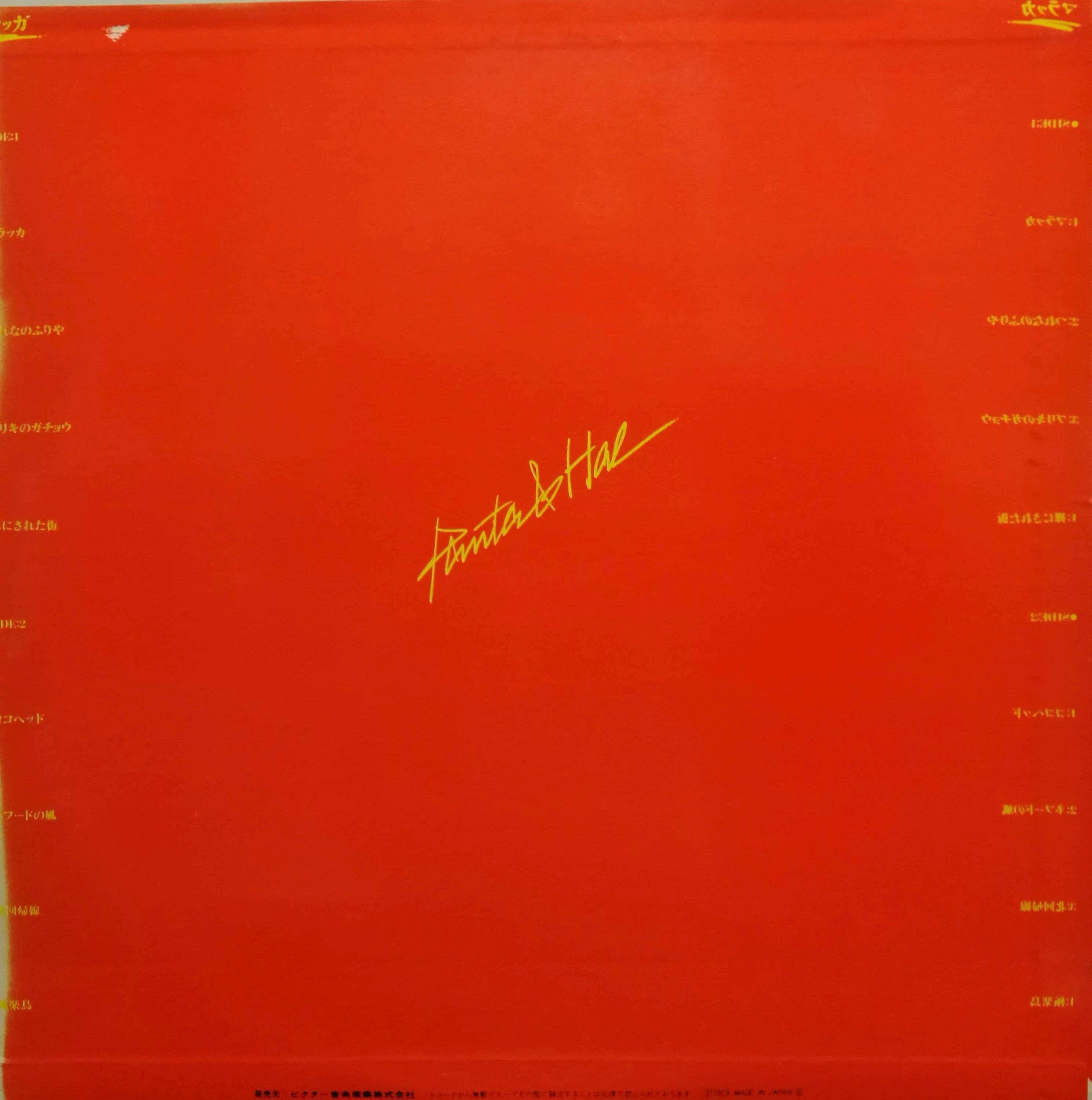 痺れるイントロのレゲエ・チューン " つれなのふりや " 、ファンキーな " ココヘッド " 、 「 Moonriders 」 を思わせるAORテイスト " 極楽鳥-マーク・ボランに捧ぐ " 、名バラード " 裸にされた街 " など。元 「 頭脳警察 」 のパンタが結成した新バンド、「 パンタ&ハル 」の79年作ファーストは、「 ムーンライダーズ 」 の 「 鈴木慶一 」 氏をディレクターに据えた迎えた大傑作。