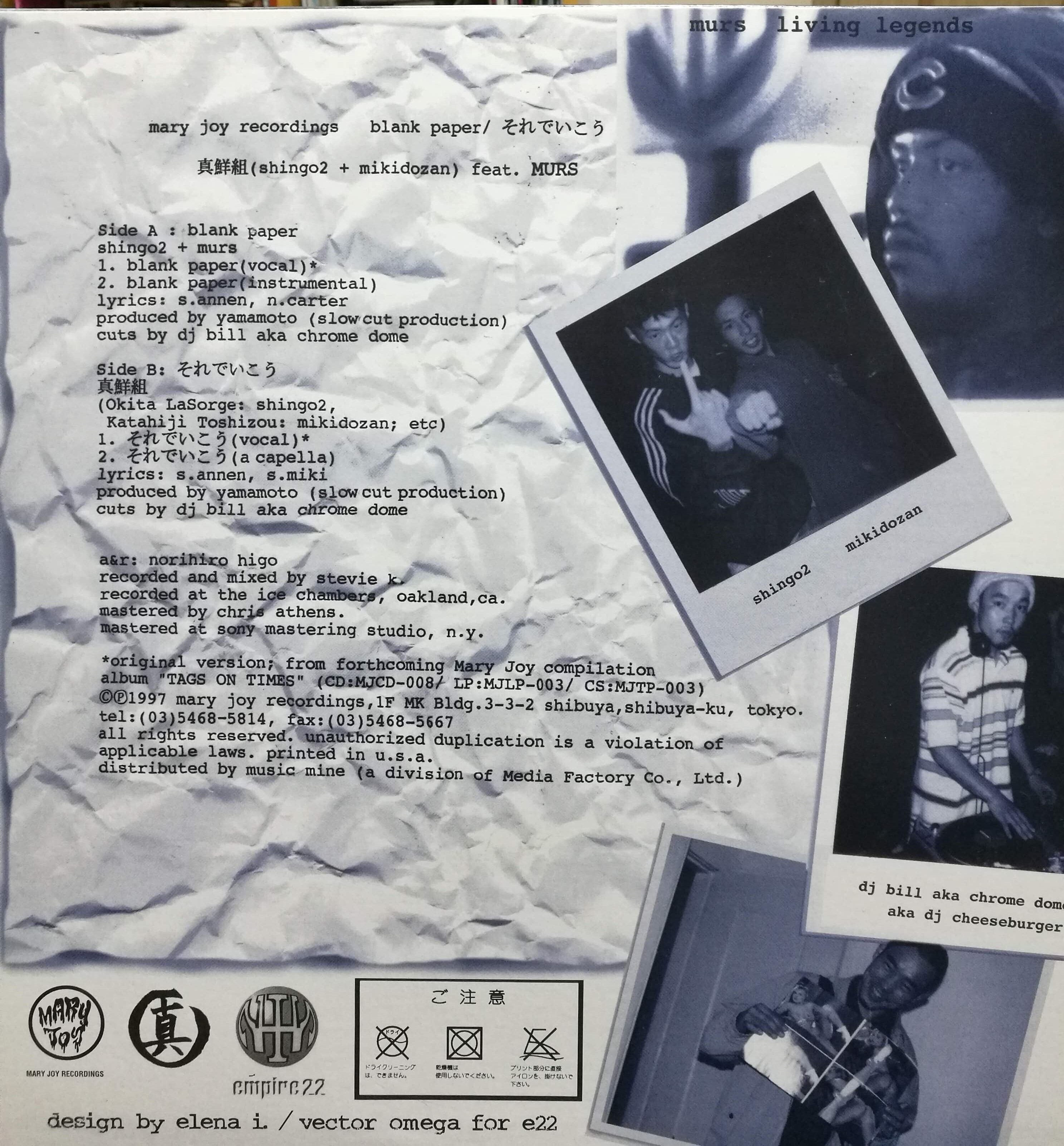 【廃盤12inch】真鮮組 (Shing02 + Mikidozan) Feat. Murs / Blank Paper / それでいこうになります。