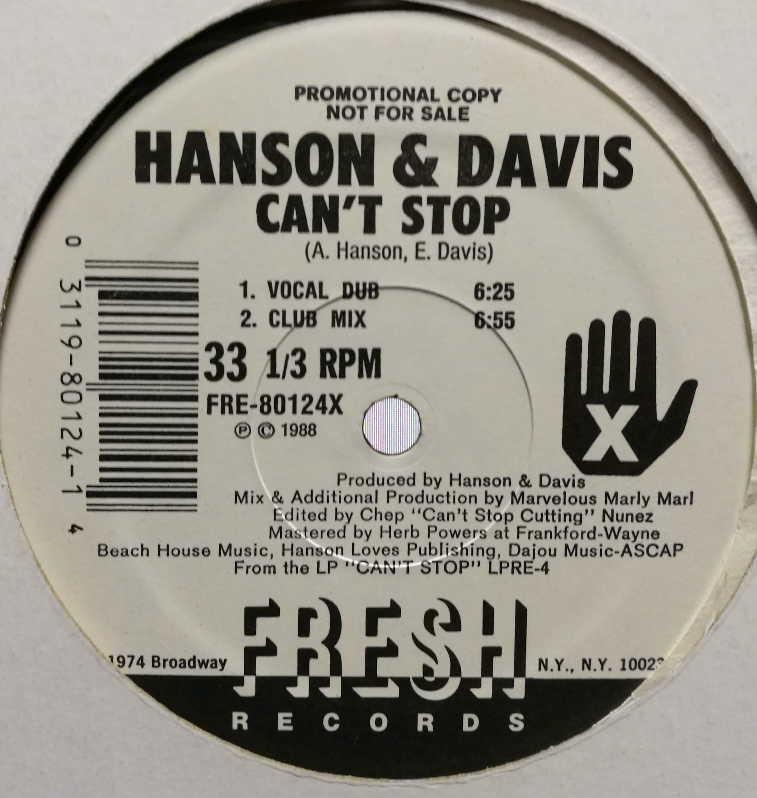 【12inch】Hanson & Davis / Can't Stop