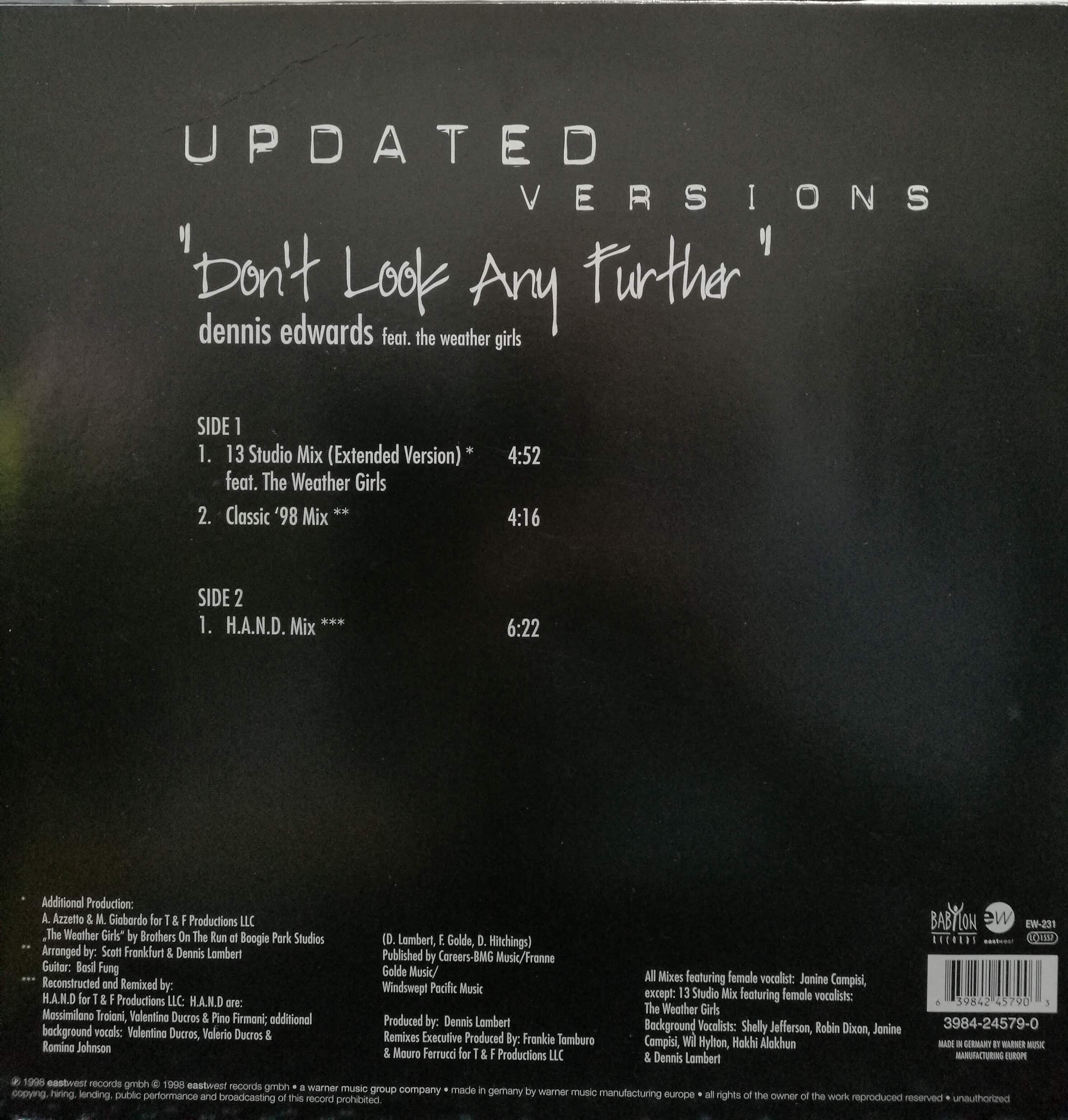 【廃盤12inch】Dennis Edwards Feat. The Weather Girls / Don't Look Any Further (Updated Versions)になります。