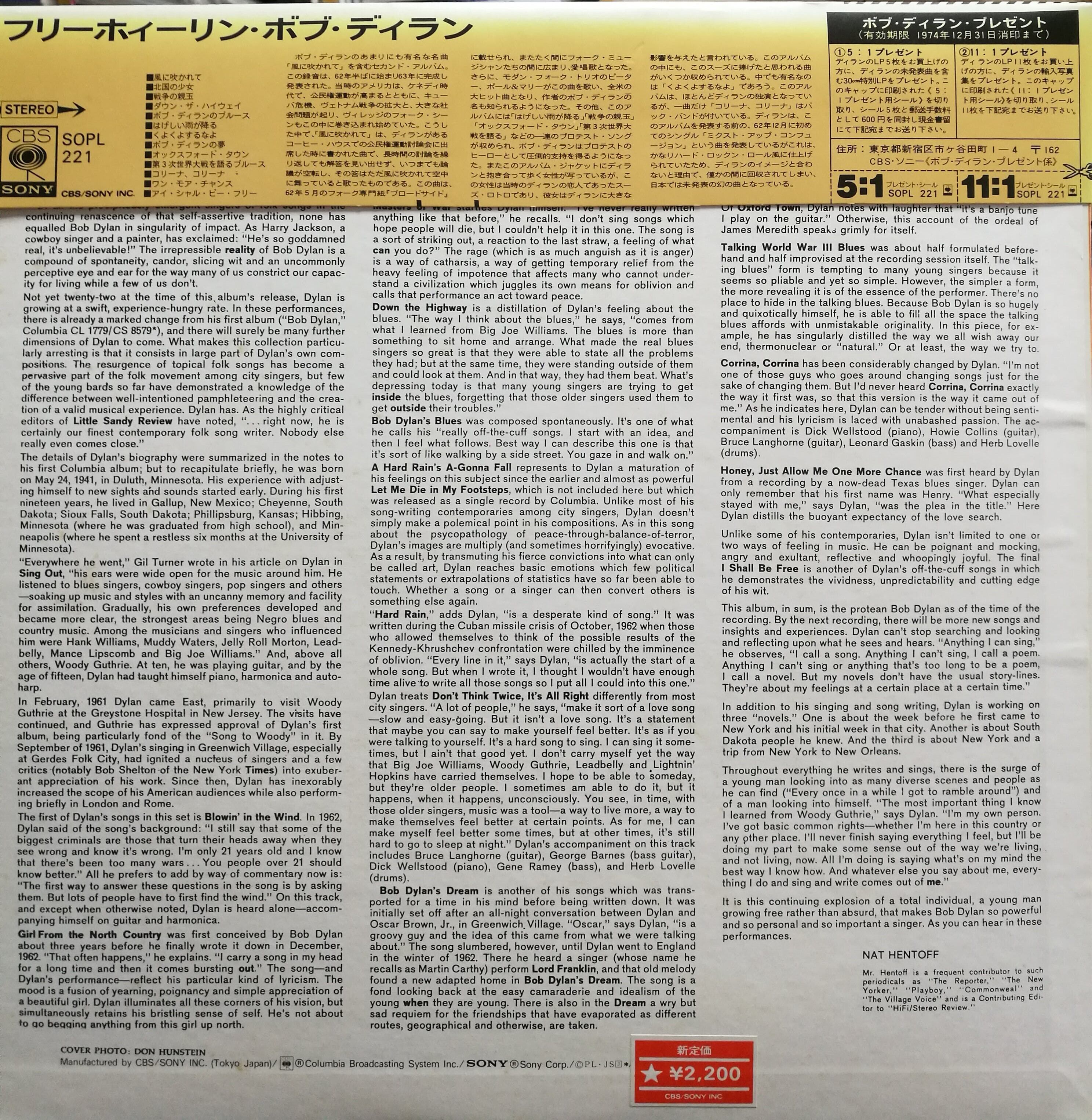 【廃盤LP】Bob Dylan / フリーホィーリン The Freewheelin' Bob Dylanになります。日本盤・帯・解説付です。