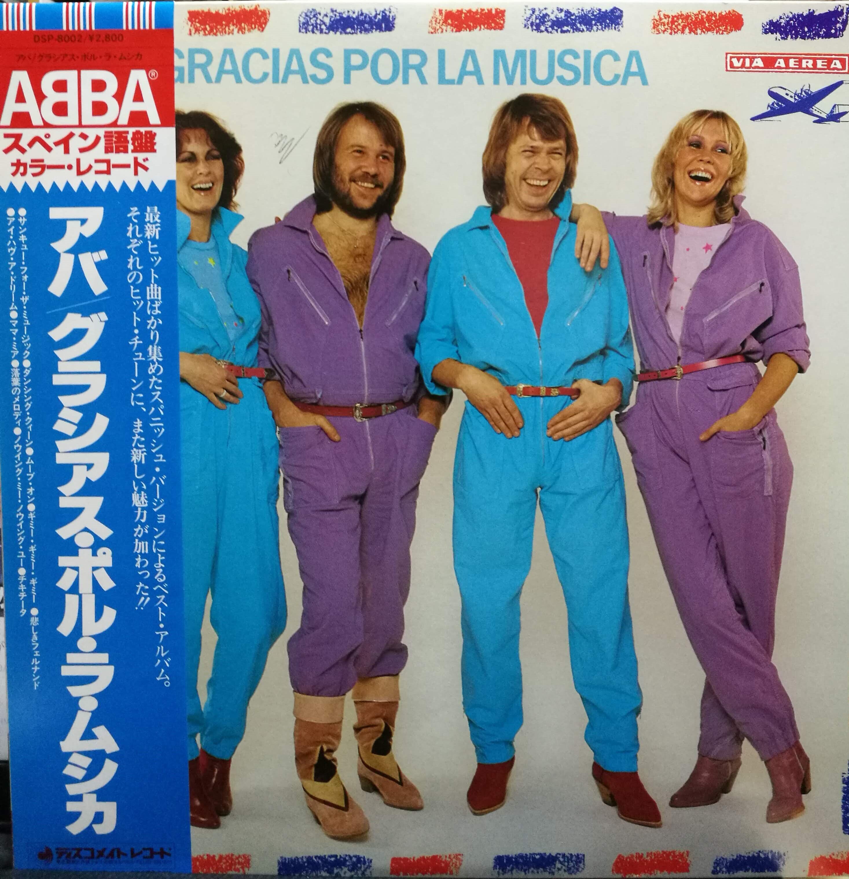 "Dancing Queen","Gimme! Gimme! Gimme!"などの ヒットナンバーをスペイン語で歌ったアルバム。 レッドヴァイナル 帯、ライナー付き。