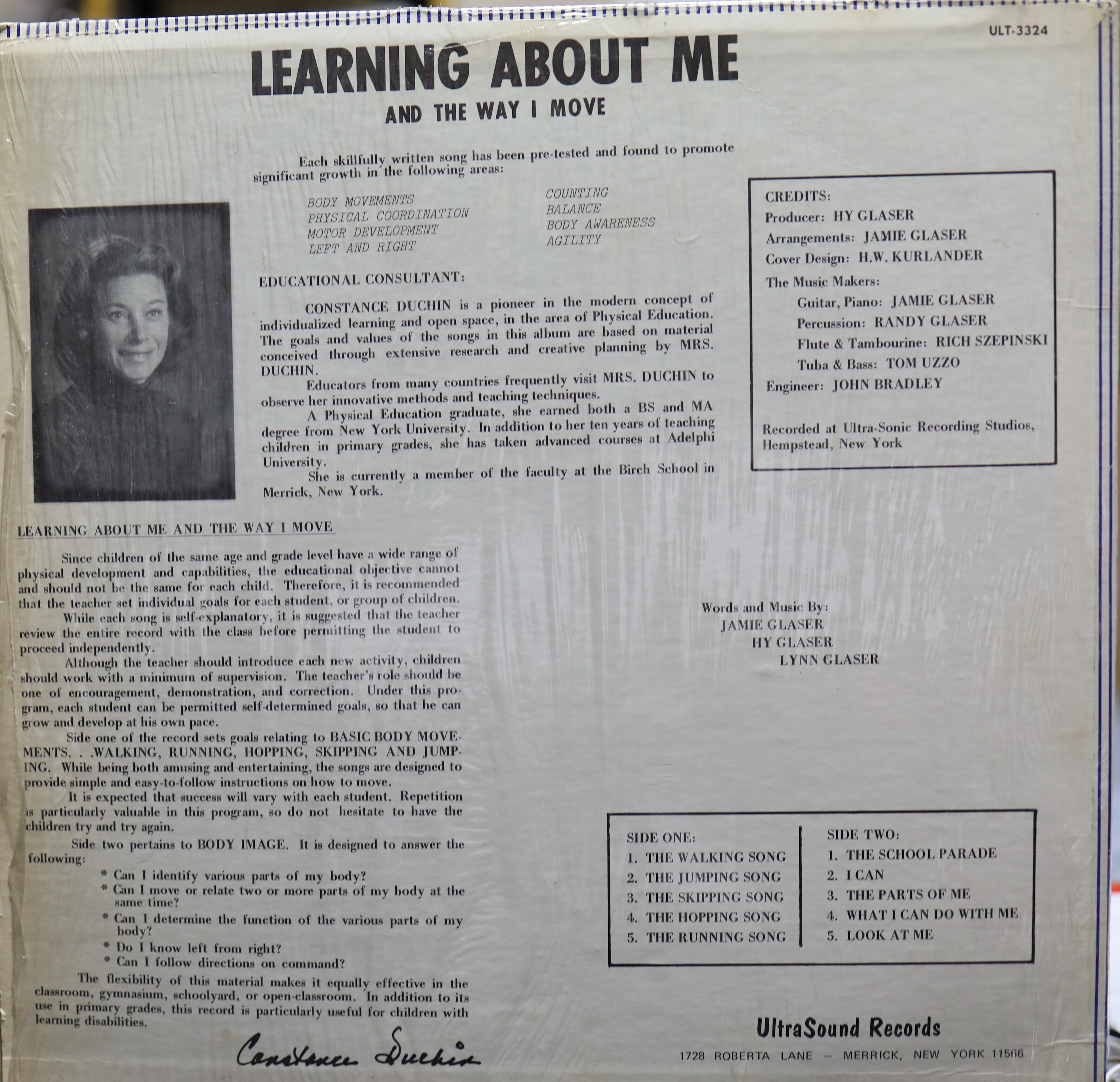 【廃盤LP】Jamie Glaser, Hy Glaser, Lynn Glaser / Learning About Me And The Way I Moveになります。US盤歌詞カード付です。