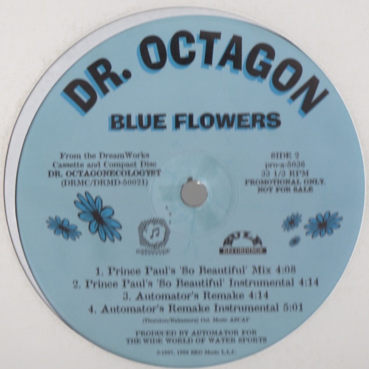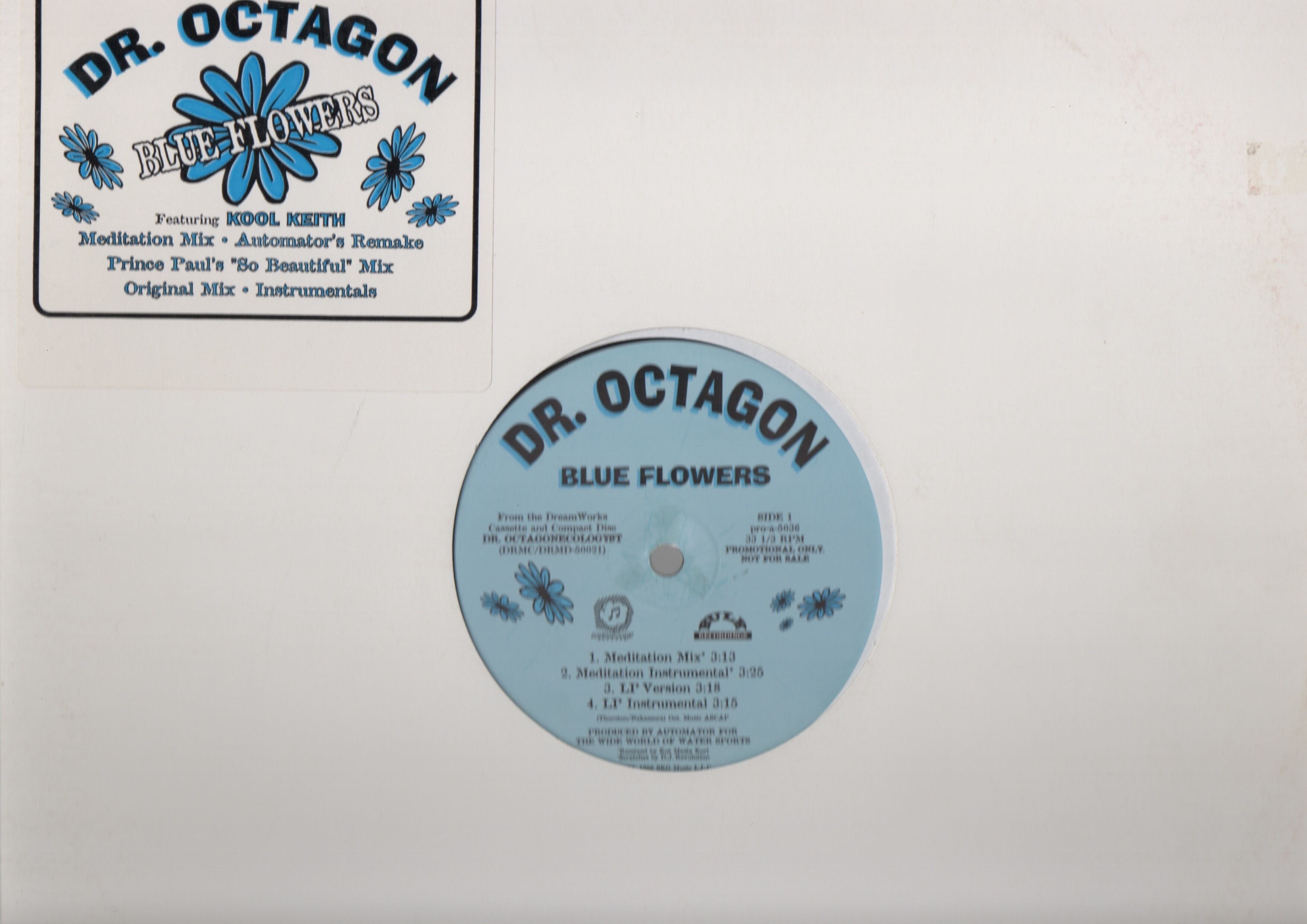 Ultramagnetic MCsのメンバーとして、Dr. Dooomでも知られるKool Keithの変名Dr.Octagonの96年作。巧みなスクラッチも絡む怪しげなシンセが印象的なA1「Blue Flower Meditation Mix」、分厚いシンセベースにヴァイオリンの音が絡むオリジナルヴァージョンA3「Blue Flower LP Version」、昆虫の泣き声や気怠いピアノが絡むPrince Paul RemixのB1「Blue Flower Prince Paul's So Beatiful' Mix」等を収録。