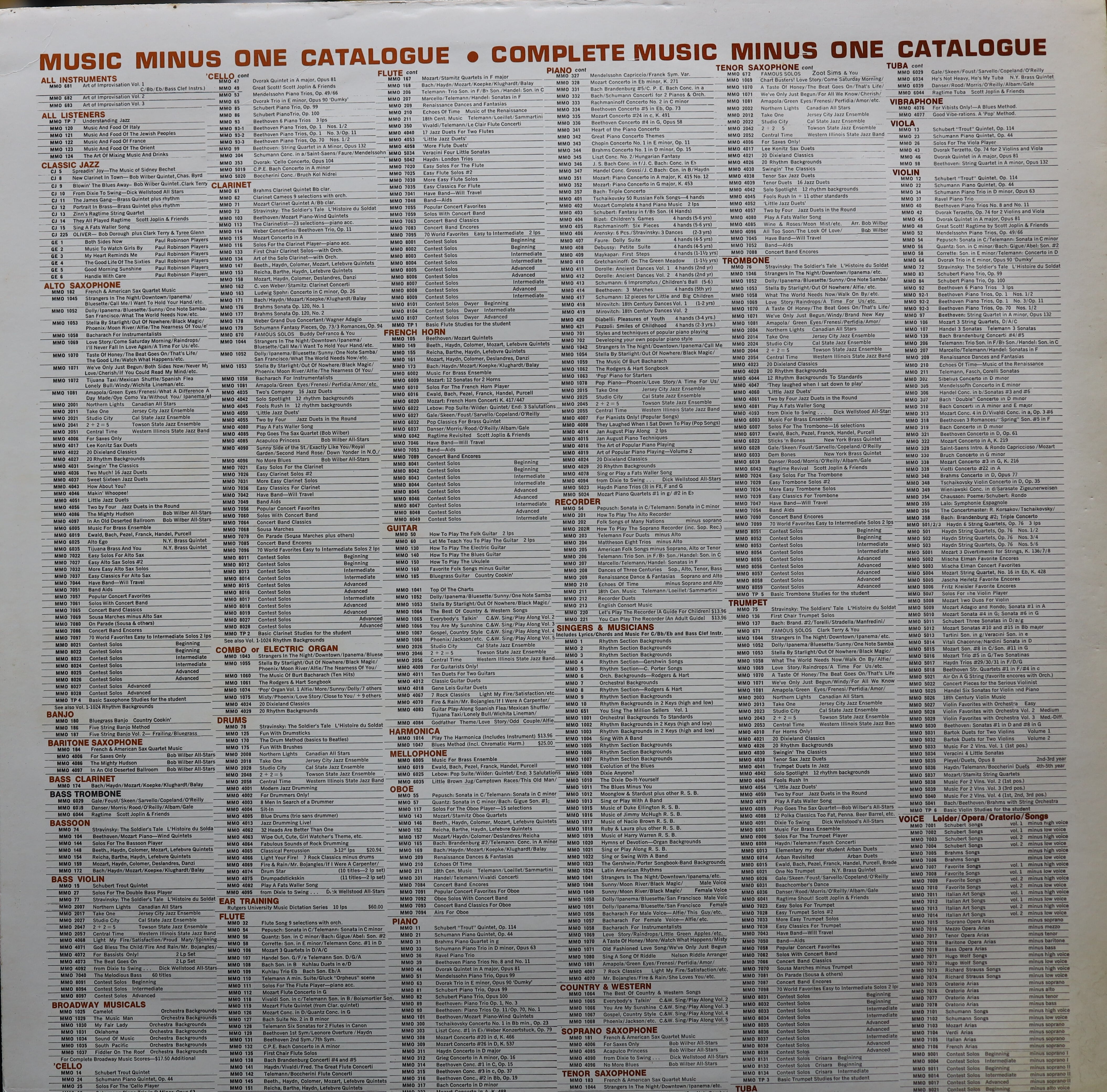 【廃盤LP】バッハ/パーキンソン / Music Minus One Flute - Brandenburg Concerti No. Four In G No. Five In D MMO-138になります。