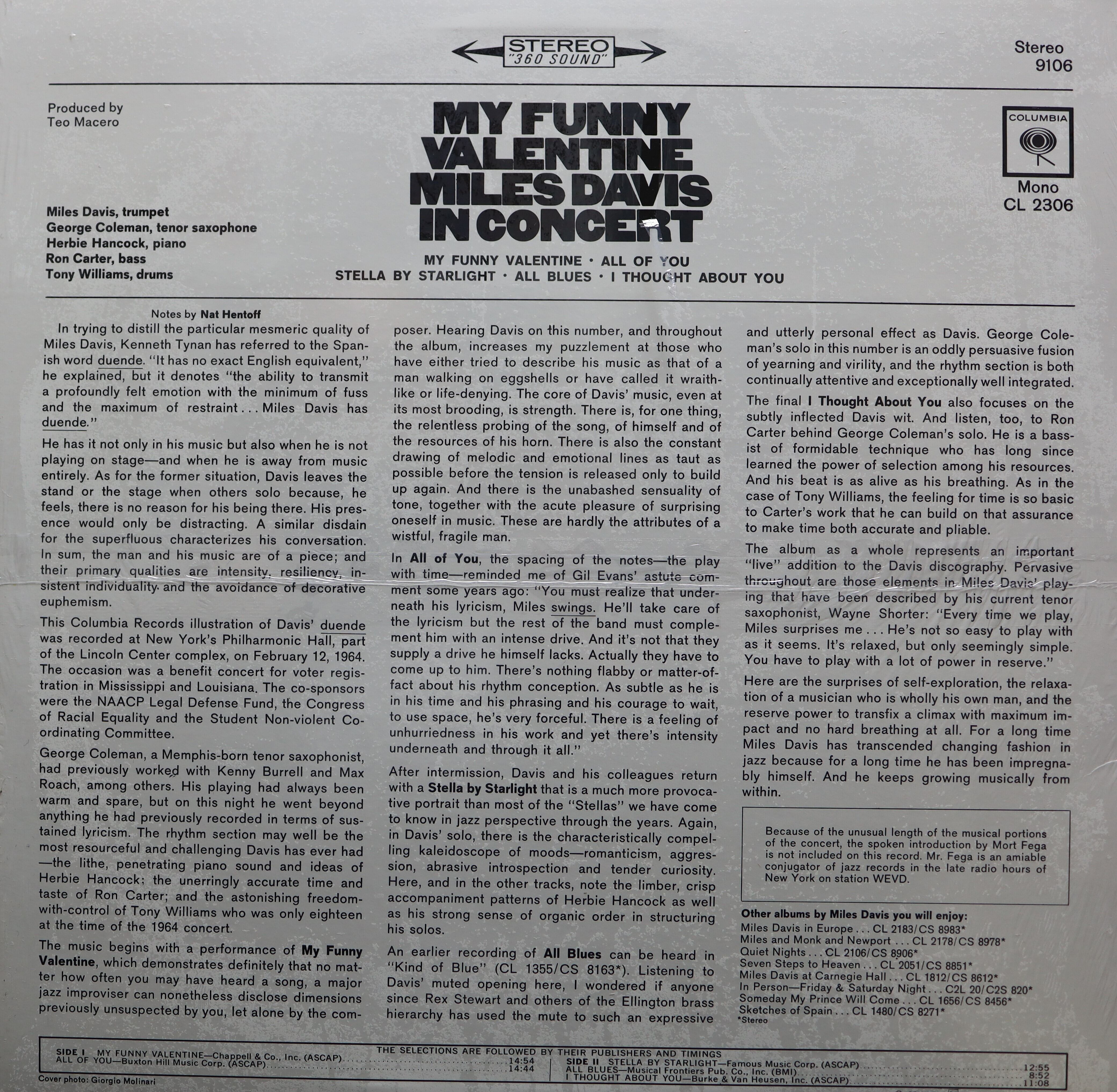 15分に及ぶ"MY FUNNY VALENTINE"を収録した TEO MACEROプロデュース、HERBIE HANCOCK、 RON CARTERら参加の64年作。