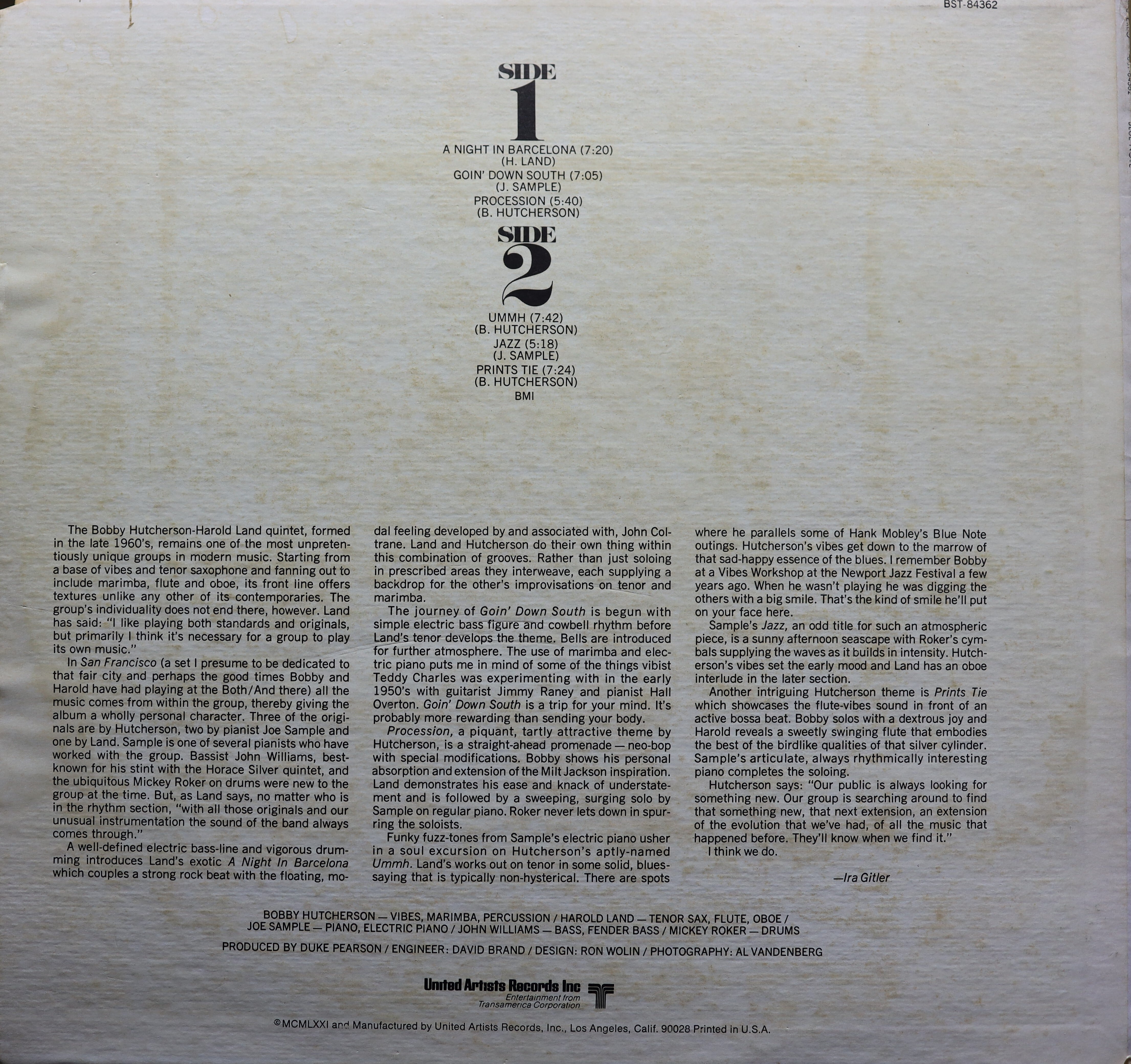 管弦奏者 : Harold Land との共作で知られる Bobby Hutcherson 70年作!! Jazz Funk の人気ナンバー 「Goin' Down South」 は、Joe Sampleも鍵盤で参加!! 他にもアンビエント寄りな落ち着きのある上品な 「Procession」 は、Diamond 「This One」ネタ!!!