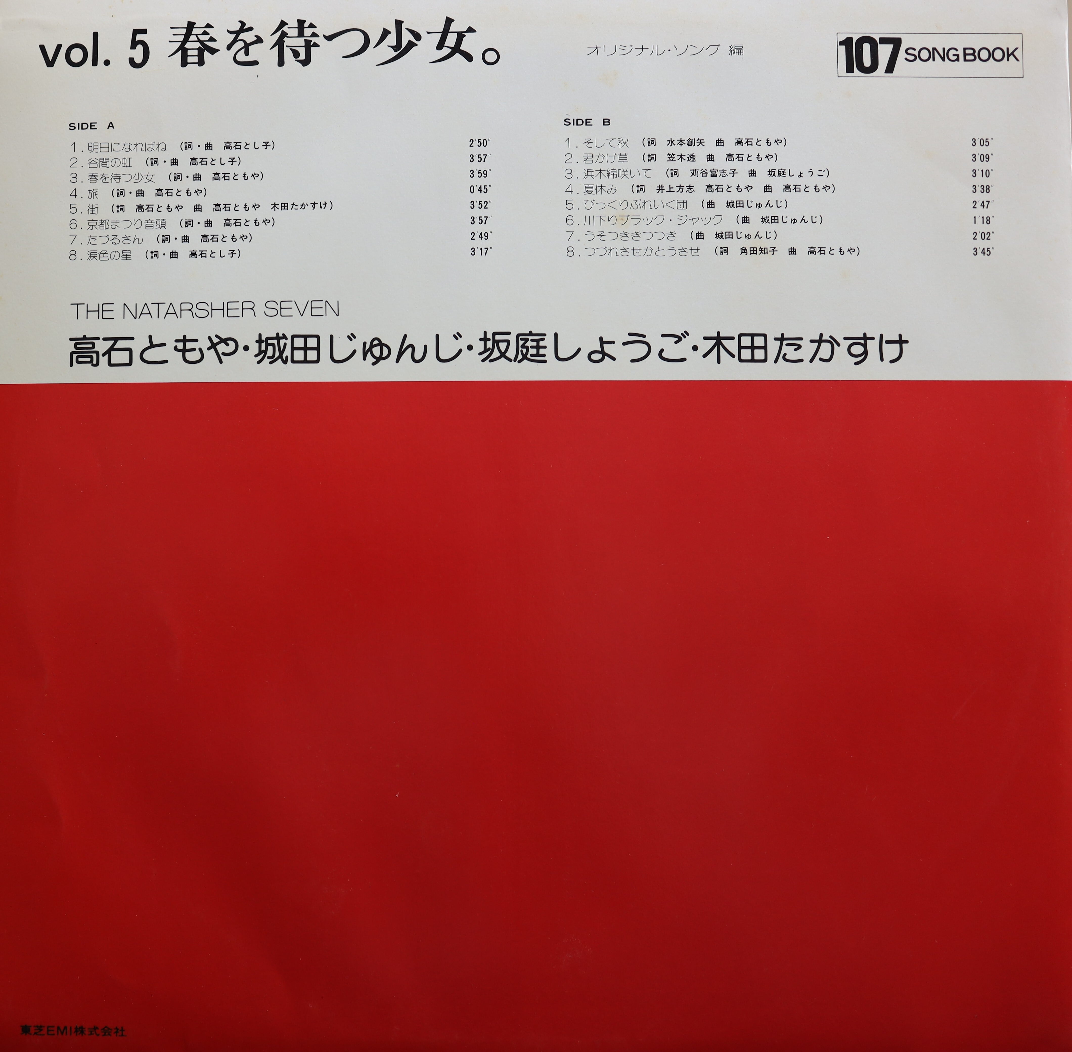 【廃盤LP】高石ともや & ザ・ナターシャ・セブン / 春を待つ少女。になります。高石ともや & ザ・ナターシャ・セブン/ソングブック全集のばら売りで、歌詞カードは欠品です。