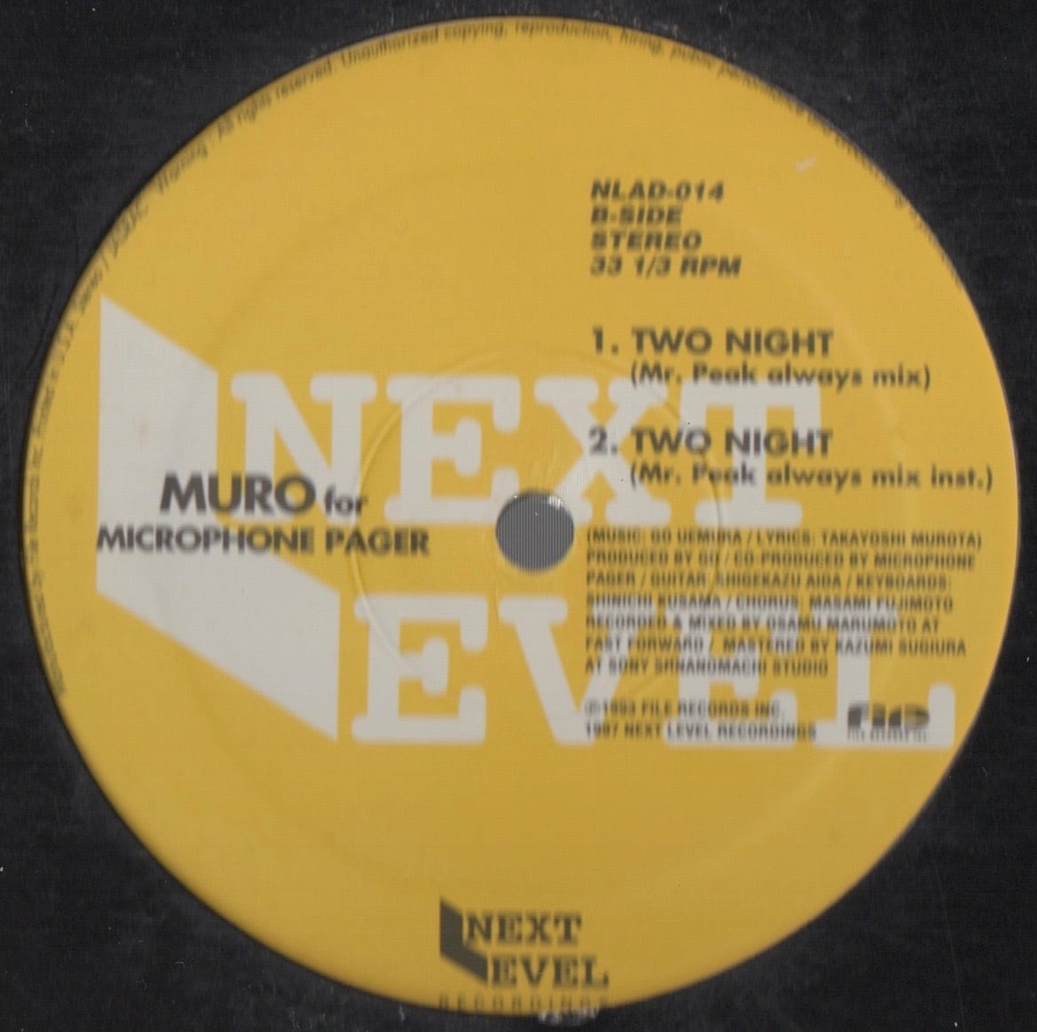 KRUSH POSSEを経て、MICROPHONE PAGERを結成したMUROがグループとしての作品に先駆けて発表した、記念すべきMUROのソロ・デビューシングル。DJ GOが手掛けたビートはMOHAWKS"THE CHAMP"を使用した大ネタ使いではありますが、使い方には確かなオリジナリティーを感じます。そこに乗ってくるMUROのサッカーMCモノのリリックはありきたりと言ってしまえばそれまでながら、93年にしてこのハードコアなスタイルは確実に異端。MICROPHONE PAGERの相棒、TWIGYを迎えた"TWO NIGHT"(PATRICE RUSHEN"REMIND ME"と定番ブレイク、HONEY DRIPPERS"IMPEACH THE PRESIDENT"使用!)には、SOUL SCREAMが"黒い月の夜"で引用した「あの日の夜 クラブは満員だった、彼女はもうそこに居ない」なんてラインも飛び出すラブ・ソング。"TWO NIGHT"(MR. PEAK ALWAYS MIX)のフックの一節は、もちろんROSE ROYCE"OOH BOY, I LOVE YOU SO"の替え歌。こちらはオリジナル・バージョンとはリリック違いの1997年再発JP盤。コア路線の日本語ラップの土台を築いた"MICROPHONE PAGER"からの日本語ラップ重要作!!